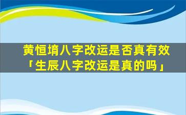 对于黄恒堉八字改运是否真有 🌿 效的看法因 🌻 人而异,不同的观点如下: