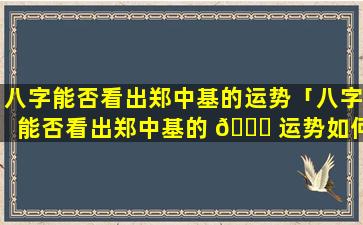 总体来说,郑,中基的 🌹 八字运势起伏较大但整体运势 🌻 偏好。