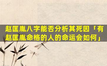 因此,從,八字來看趙匡胤的死因可能與腎 🐡 臟系統疾病有關。