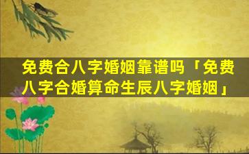 免费八字合婚算命 🦢 生辰八字 🪴 婚姻