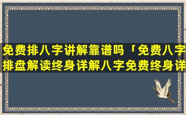 免费 🌿 排八字讲解一般不靠 🐦 谱,原因如下: