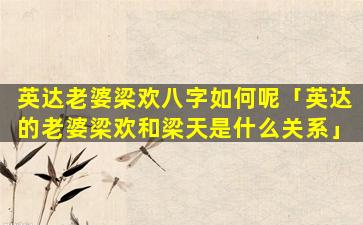 1997年,梁欢与导演英达结婚婚。后,她,淡。出,主持界转向影 🐬 视剧 🕷 表演她曾出演过多部脍炙人口的作品如《我爱我家》、《闲人》、《马》大。姐铁齿铜牙纪晓 🍁 岚等