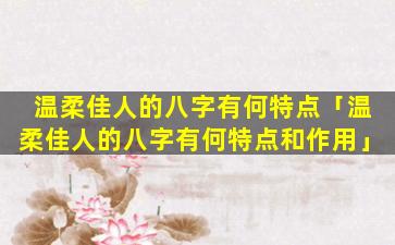 八 🪴 字中体现温 🌿 柔佳人的特点: