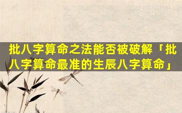 批八 🐡 字算命之法是否能 🐯 被破解?