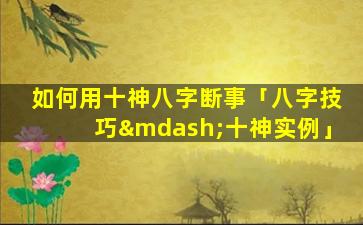 注意用十神 🦋 断八字是一项复杂且 🐕 需要经验的 🐘 技能。
