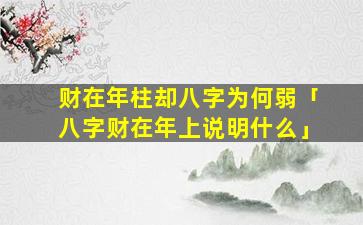 其他因素:八字组合:要结合 ☘ 整个八字的组合来看财在年支的作 🕸 用。如果八字身强财弱财在 🕷 年支,则为吉如果八字身弱财;旺财在年支,则。为凶