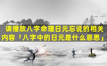 日元忘说是一种八字命理学说,认,为日干在八字中受到其他干支的影响而忘其本性从而表现出与日干原本特性不同的性格和命运 🐴 。