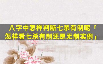 注意:七杀有制和无制并不 🐵 绝对,要具 🦄 体情况具体分析。
