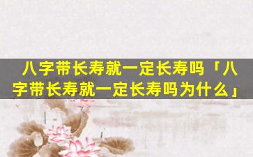 八字带长 🌺 寿不 🦢 一定一 ☘ 定长寿,原因如下: