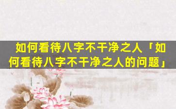 看待“八字不干净”之 🐬 人的 🌹 正确态 🦟 度
