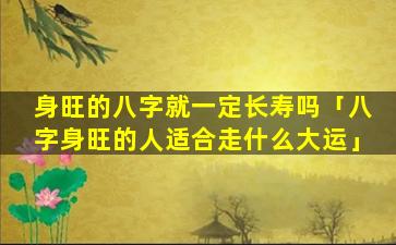 不一定。身旺的八 🦋 字能承受较多的比劫、食伤克泄,故,其。身,体相对强健但并 🐛 不代表一定会长寿长寿与否还取决于其他因素如: