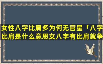 女 🕊 八 🌿 字有比肩就争夫的 🕸 说法