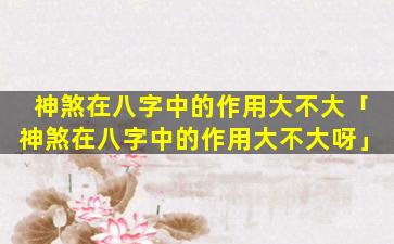 神煞在八字中的作用一直是命理学界爭论 🦄 的话题,有,观点认为其作用很大而另一些观 🐯 点则认为其作用甚微。