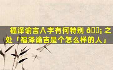 总体来说 💐 ,福 🐋 ,泽,谕,吉的八字属于上等格局命 🌹 中财官相生贵人相助有很强的富贵运和事业运。