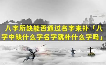 八字所缺 🕸 能否 🐦 通过名字来补 🕊