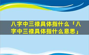 八字中 🌹 三 🕷 禄具 🐟 体指的是: