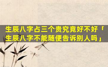 在命理学中,“生 🦉 辰八字占三个贵”是,指“一个人出生的 🐈 八个字中有三个字属于贵人”。通,常,情。况下贵人对命主运势有一定帮助但具体好坏需结合八字整体格局来看