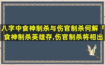 伤官制杀:当伤官星强旺,能,够 🌳 克制七杀星时命主容易成为将相之才。