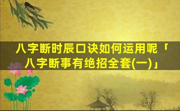 八字断时 🐴 辰 🦆 口诀运用步 🐠 骤: